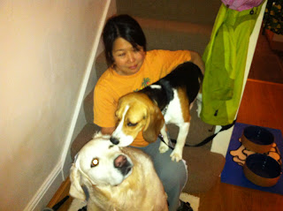 ディナーにお出かけとのことでGeogie君をお預かり。